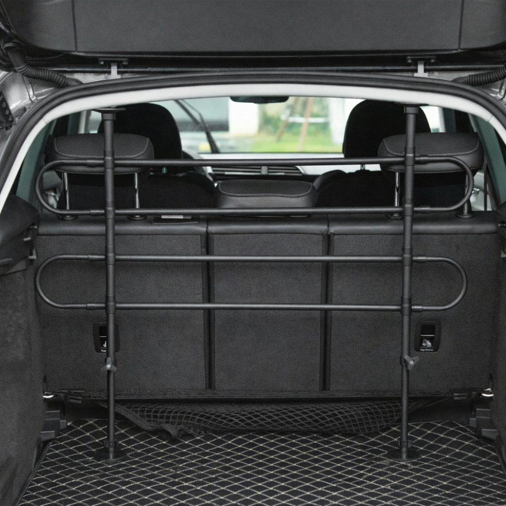 Esta barrera permite que tu perro viaje en el maletero sin moverse al asiento delantero. Evita distracciones mientras conduces y protege tanto a tu perro como a los ocupantes del coche.